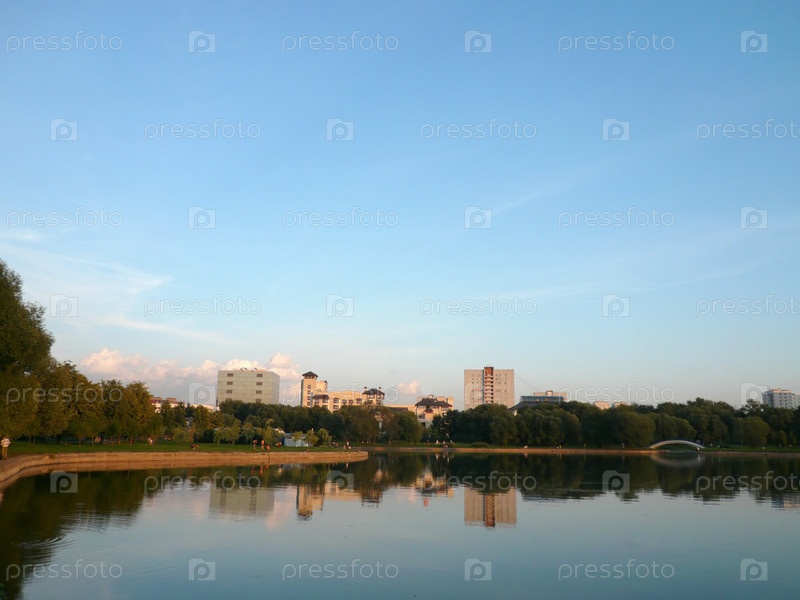 Лето в городском парке вечером