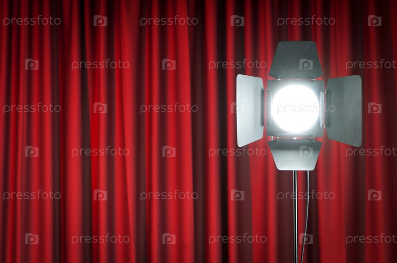 Красный занавес и прожектор в качестве фона