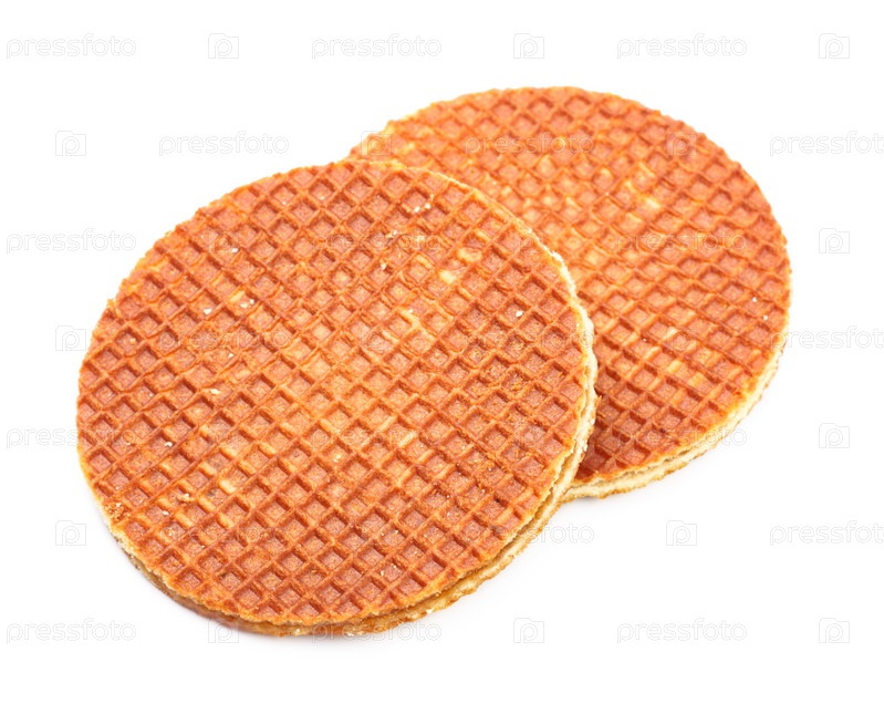 Голландские вафли с карамелью на белом фоне