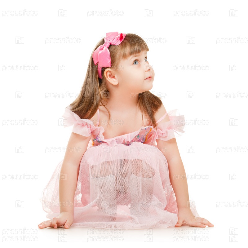 Маленькая девочка в розовом платье на белом фоне