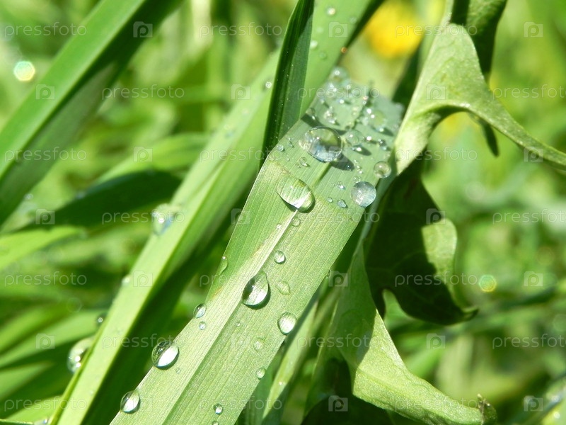 Капли росы на стебле травы