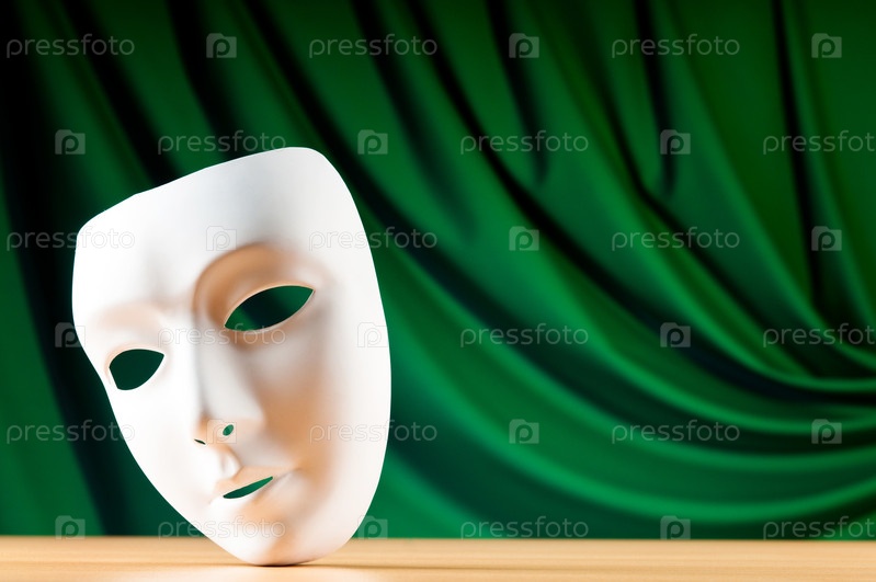 Маска на фоне зеленых кулис