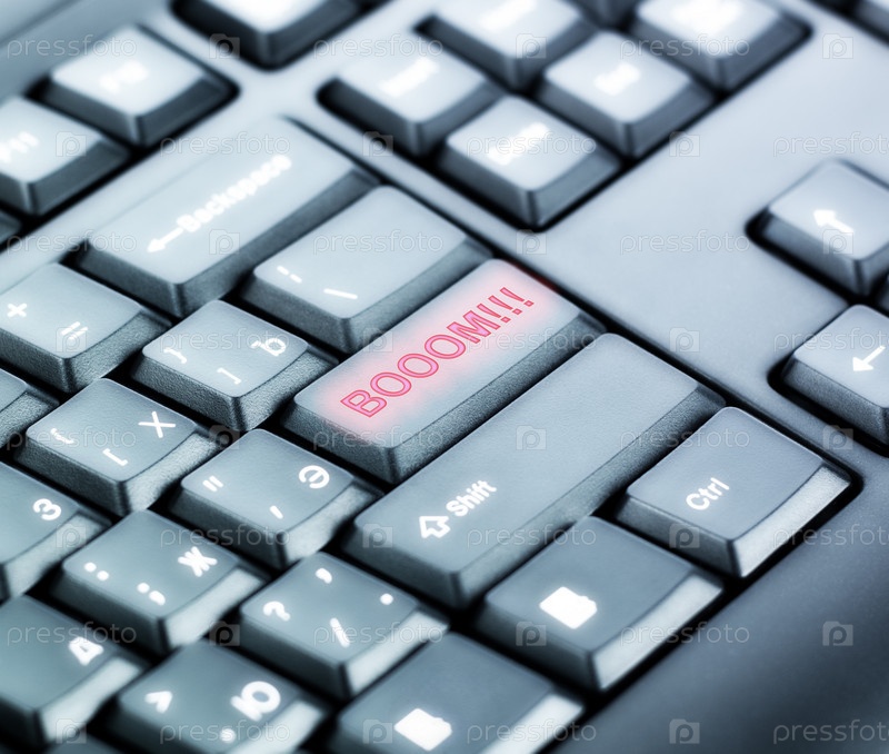 Часть черной клавиатуры с надписью 'BOOOM!!!' на одной из клавиш