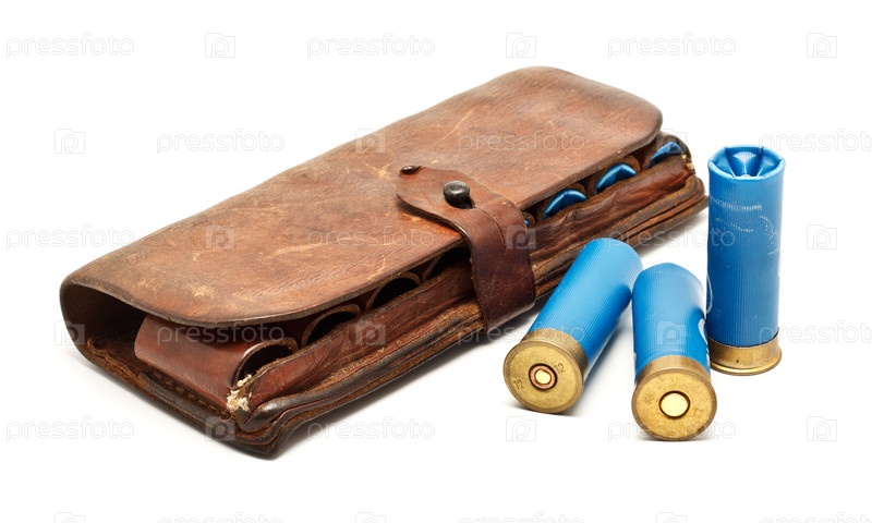 Старый патронташ и патроны на белом фоне