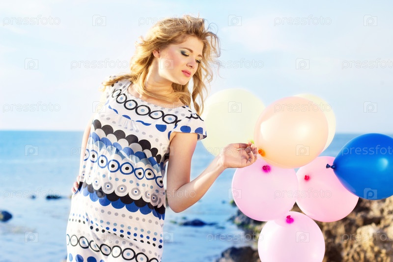 Счастливая девушка с разноцветными воздушными шарами