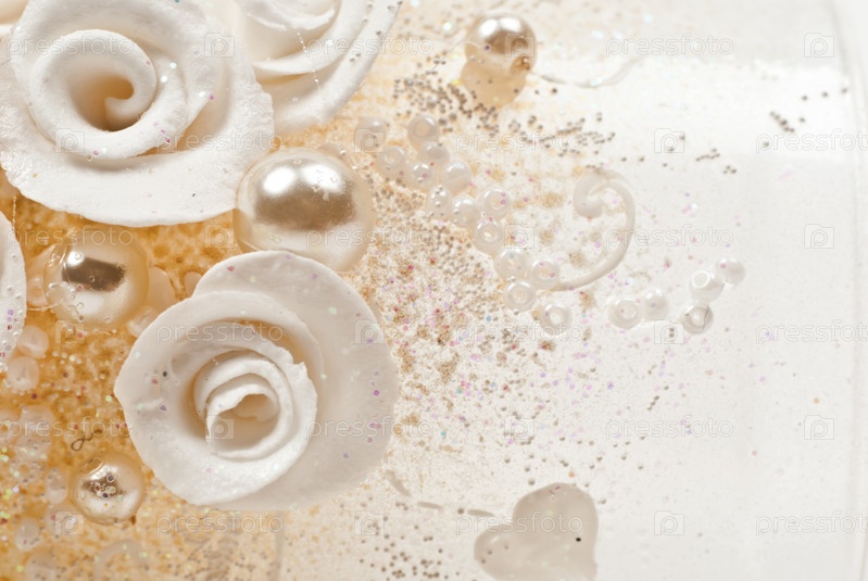 Фон с белыми розами и жемчужинами