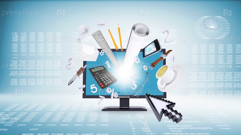 Монитор и символы бизнеса