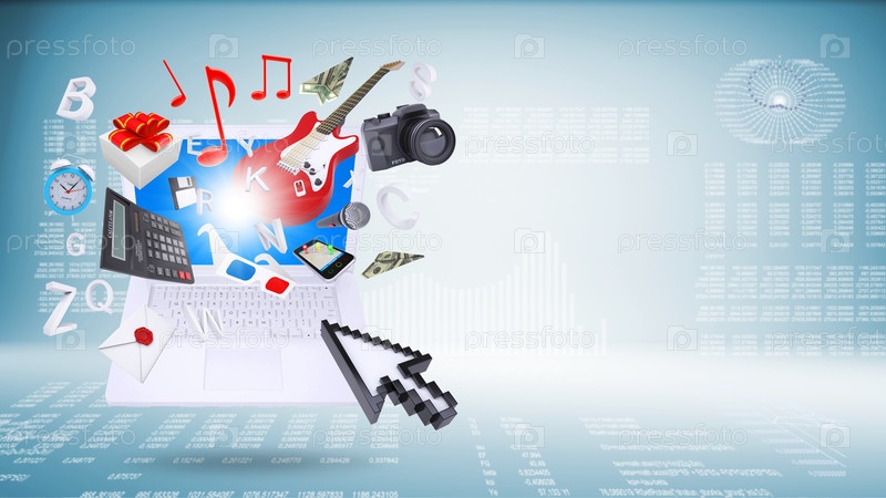 Ноутбук и символы бизнеса