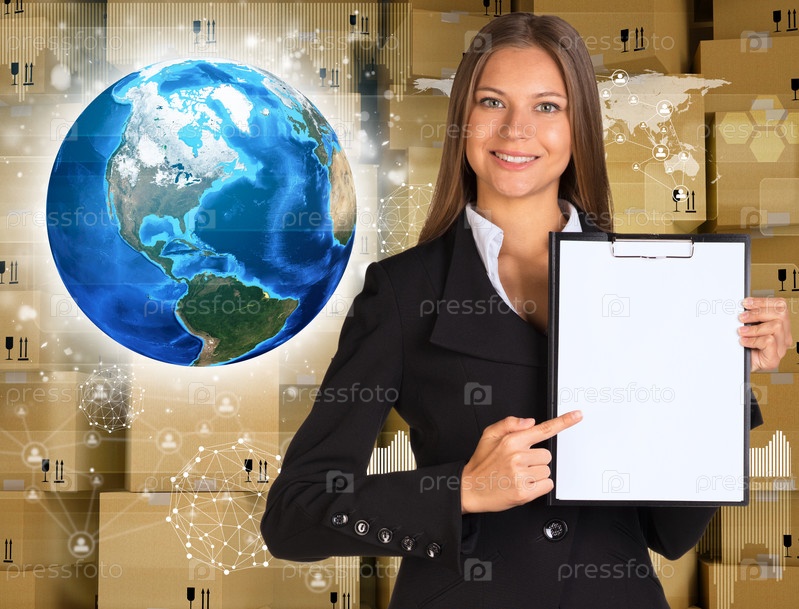Бизнес-леди с баннером для текста