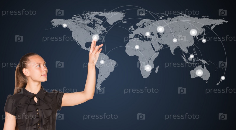 Женщина указывает на точку на карте мира