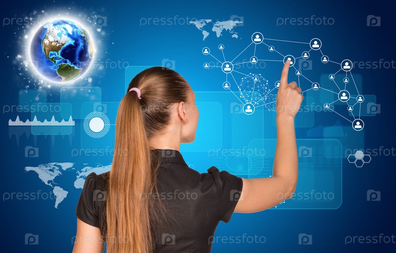 Деловая женщина нажимает на иконки