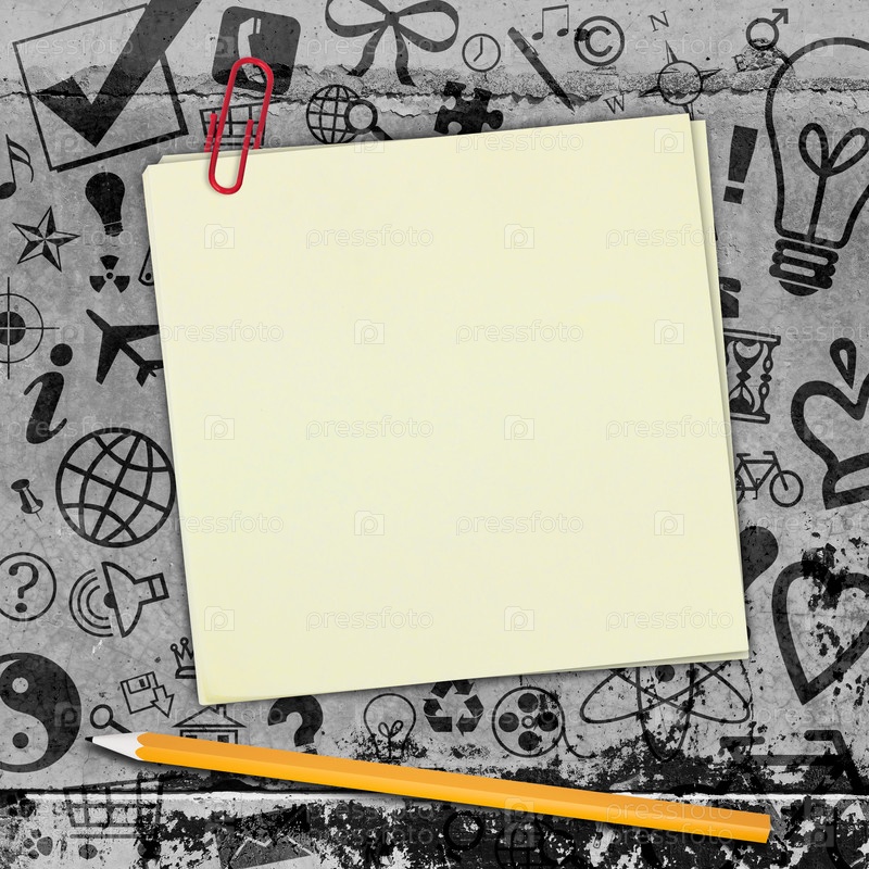 Желтые наклейки и карандаш на бетонном полу