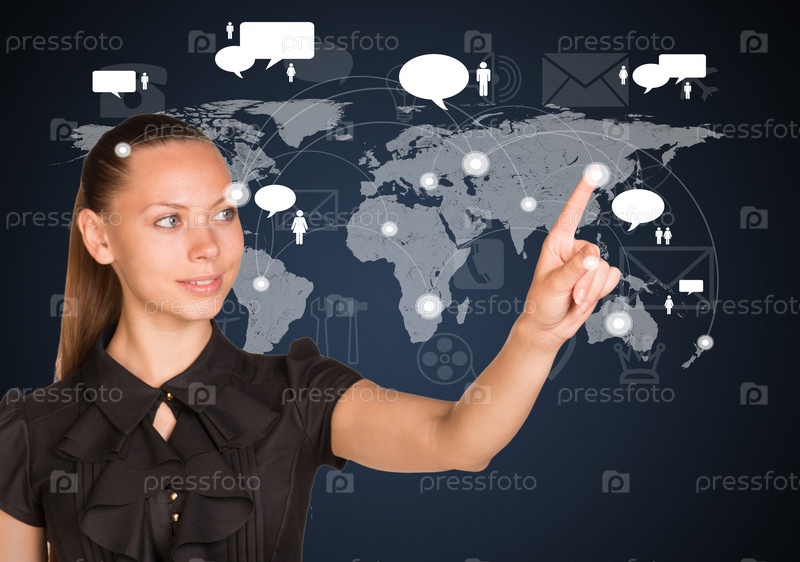 Женщина указывает на точку на карте мира