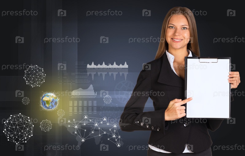 Бизнес-леди с баннером для текста