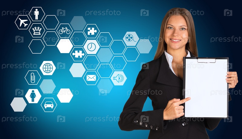 Бизнес-леди с баннером для текста