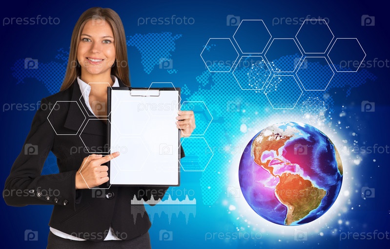 Бизнес-леди с баннером для текста