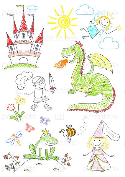 Набор эскизов персонажей сказок
