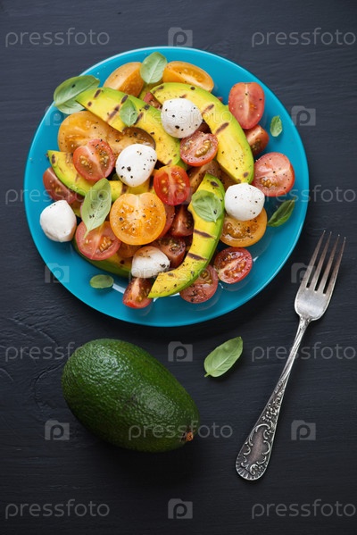 Салат с авокадо-гриль, помидорами и моцареллой