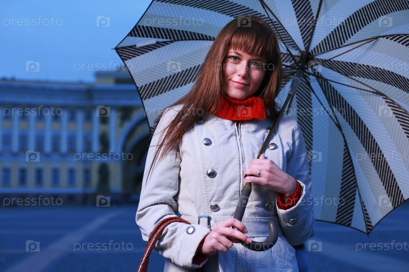 Девушка с зонтиком на Дворцовой площади, Санкт-Петербург, Россия