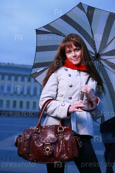 Девушка с зонтиком на Дворцовой площади, Санкт-Петербург, Россия