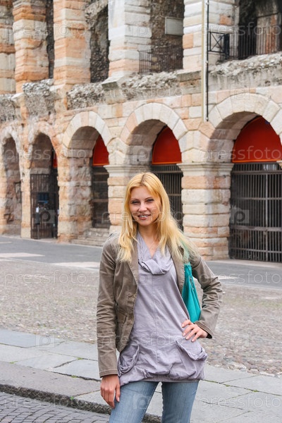 Привлекательная девушка возле арены Вероны