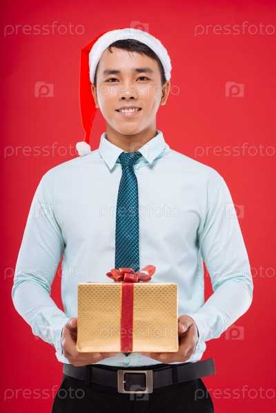 Молодой бизнесмен в новогодней шапке