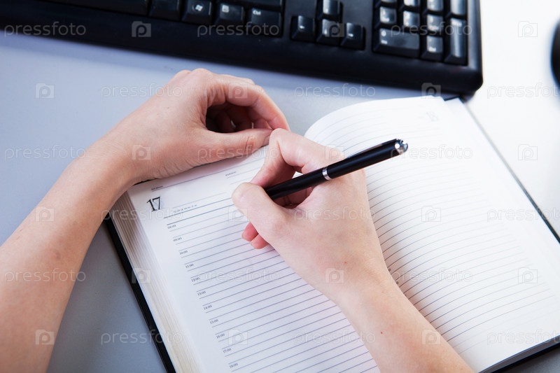 Рука делает записи в дневнике