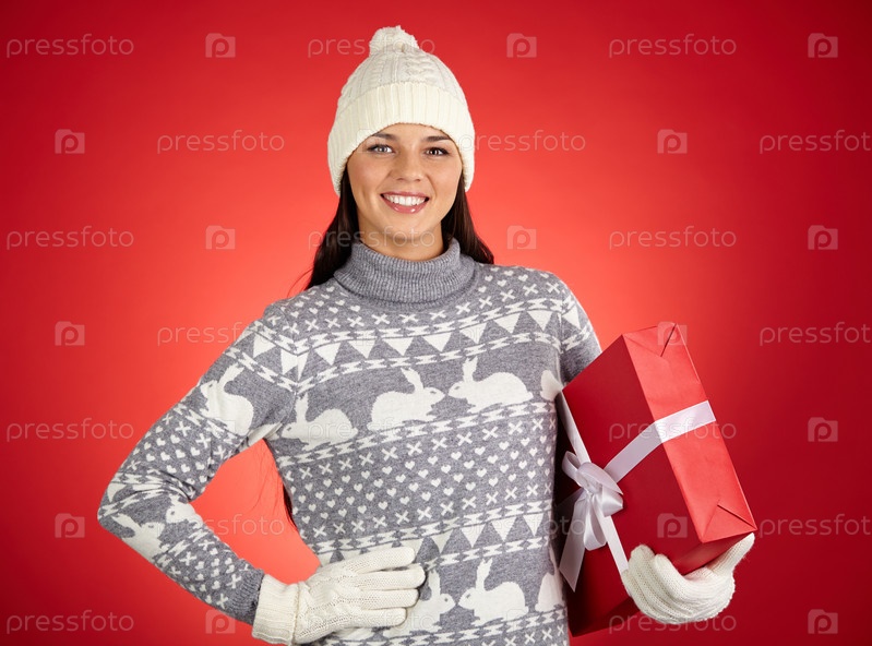 Девушка с новогодним подарком