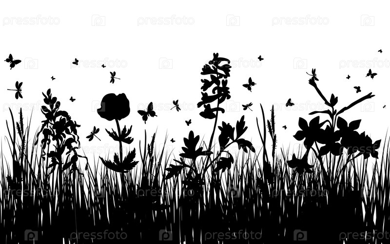 Силуэты травы и бабочек. Все объекты разделены