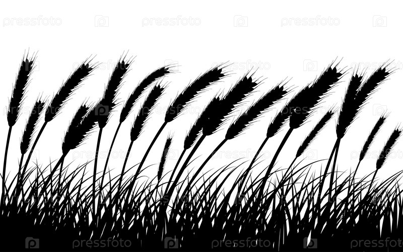Силуэты пшеничных колосьев на белом фоне. Все объекты разделены