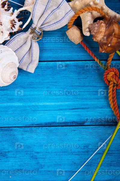 Морской натюрморт на деревянном фоне