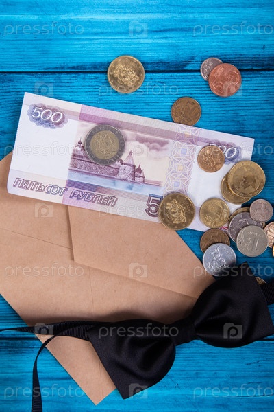 Галстук и деньги на почтовом конверте