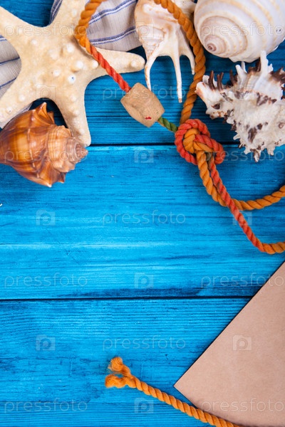 Морской натюрморт на деревянном фоне
