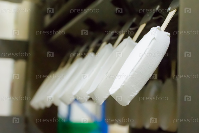 Производство мороженого на конвейере