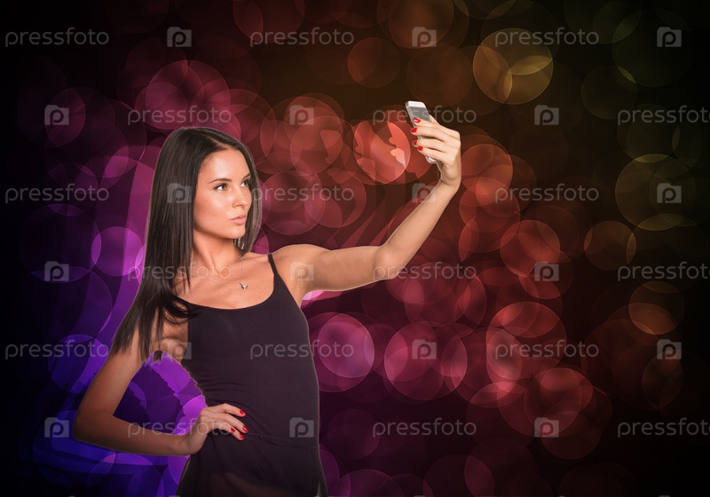 Красивая женщина делает селфи