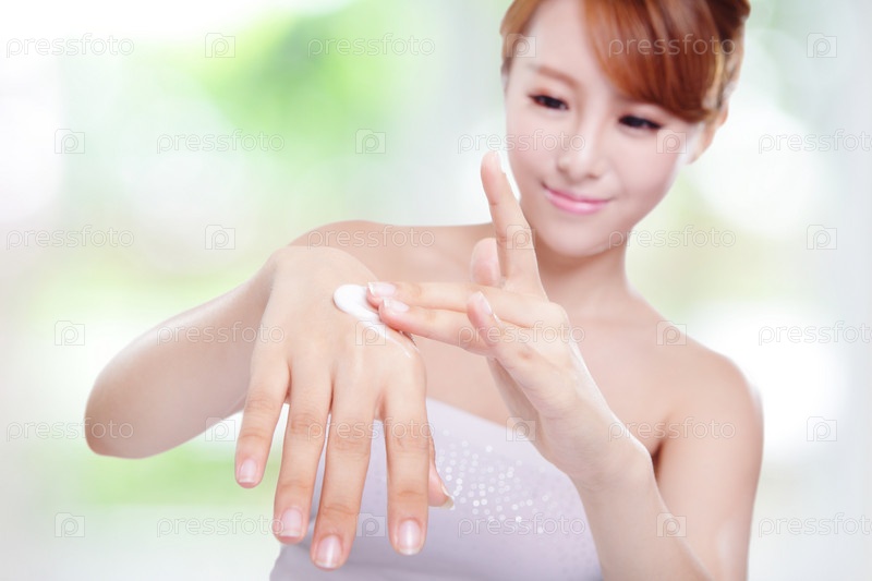 Женщина наносит крем для рук
