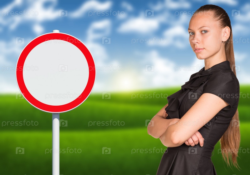 Бизнес-леди и дорожный знак