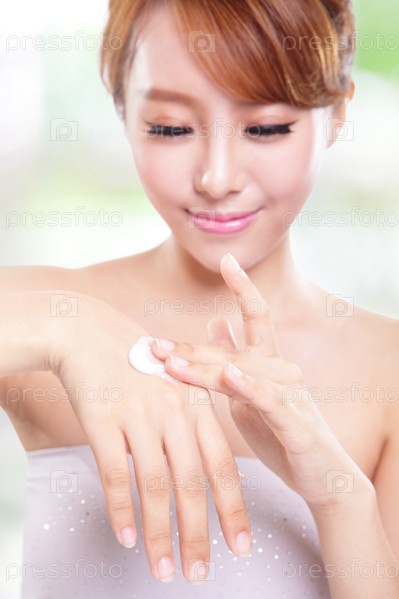 Женщина использует крем для рук