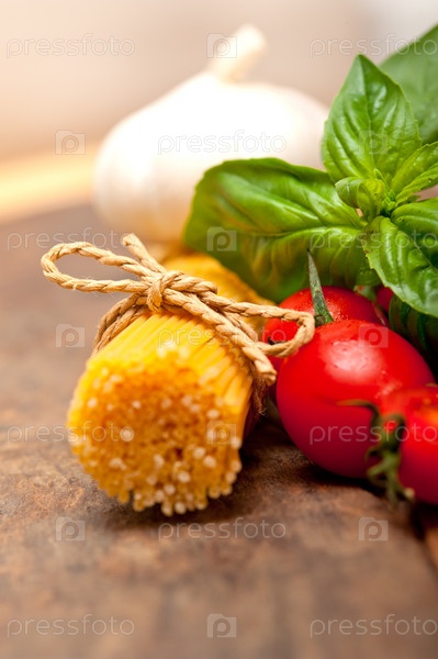Спагетти, помидоры и базилик
