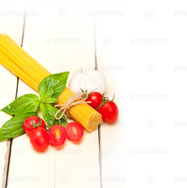 Спагетти, помидоры и базилик