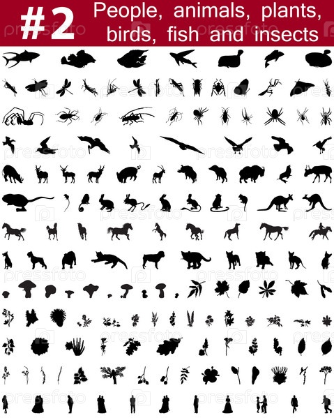 Большая коллекция силуэтов людей, животных, птиц и рыб
