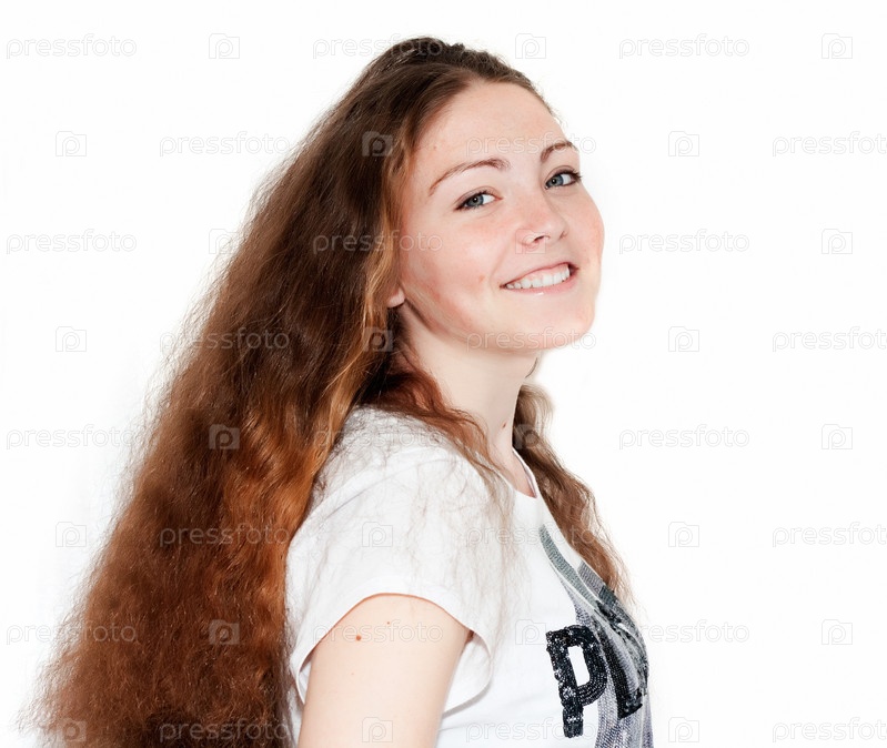 Красивая, улыбающаяся девушка на белом фоне