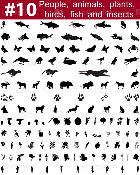 Большая коллекция силуэтов людей, животных, птиц и рыб