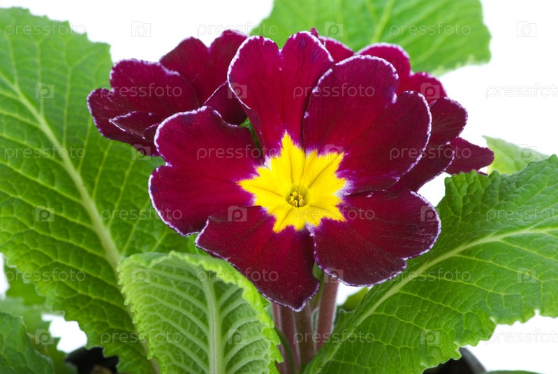 Цветок бордовой примулы. Белый фон