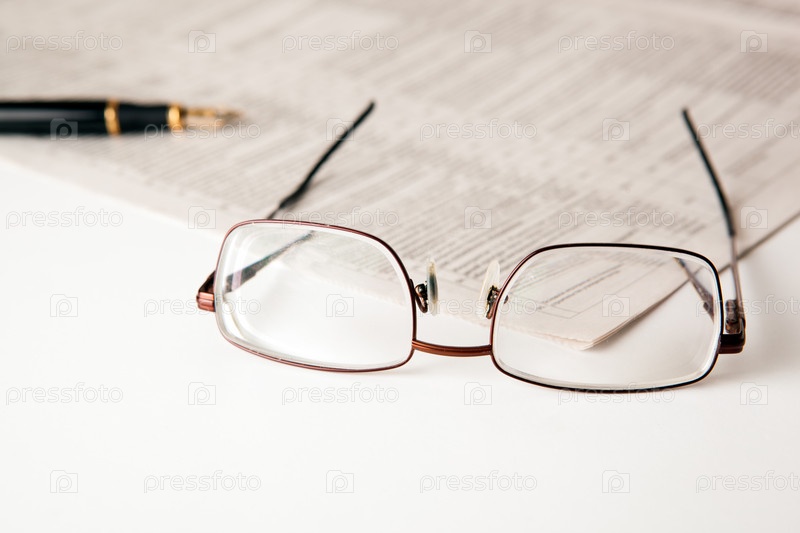 Очки и газета на столе