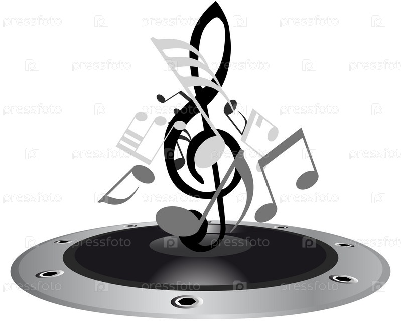 Скрипичный ключ и ноты над динамиком