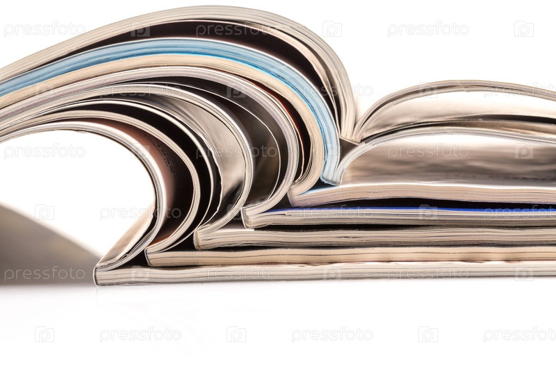 Стопка журналов на белом фоне