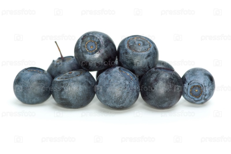 Несколько ягод черники на белом фоне