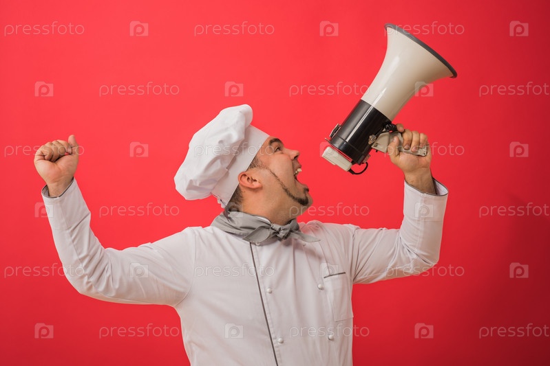 Шеф-повар кричит в мегафон