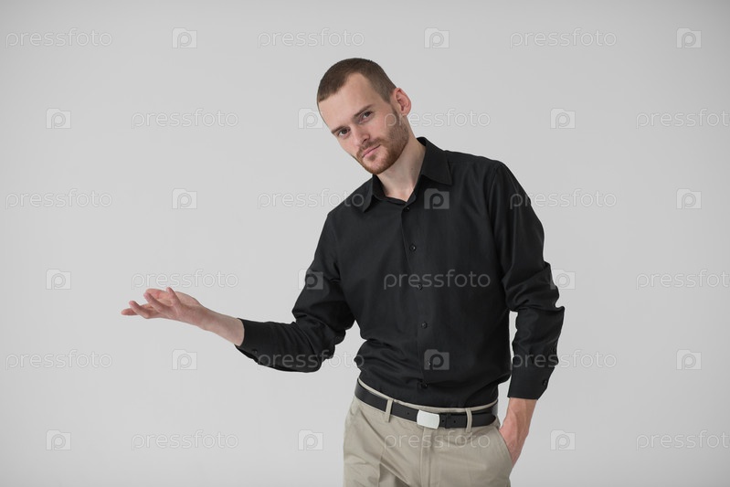 Молодой мужчина показывает на что-то рукой